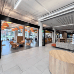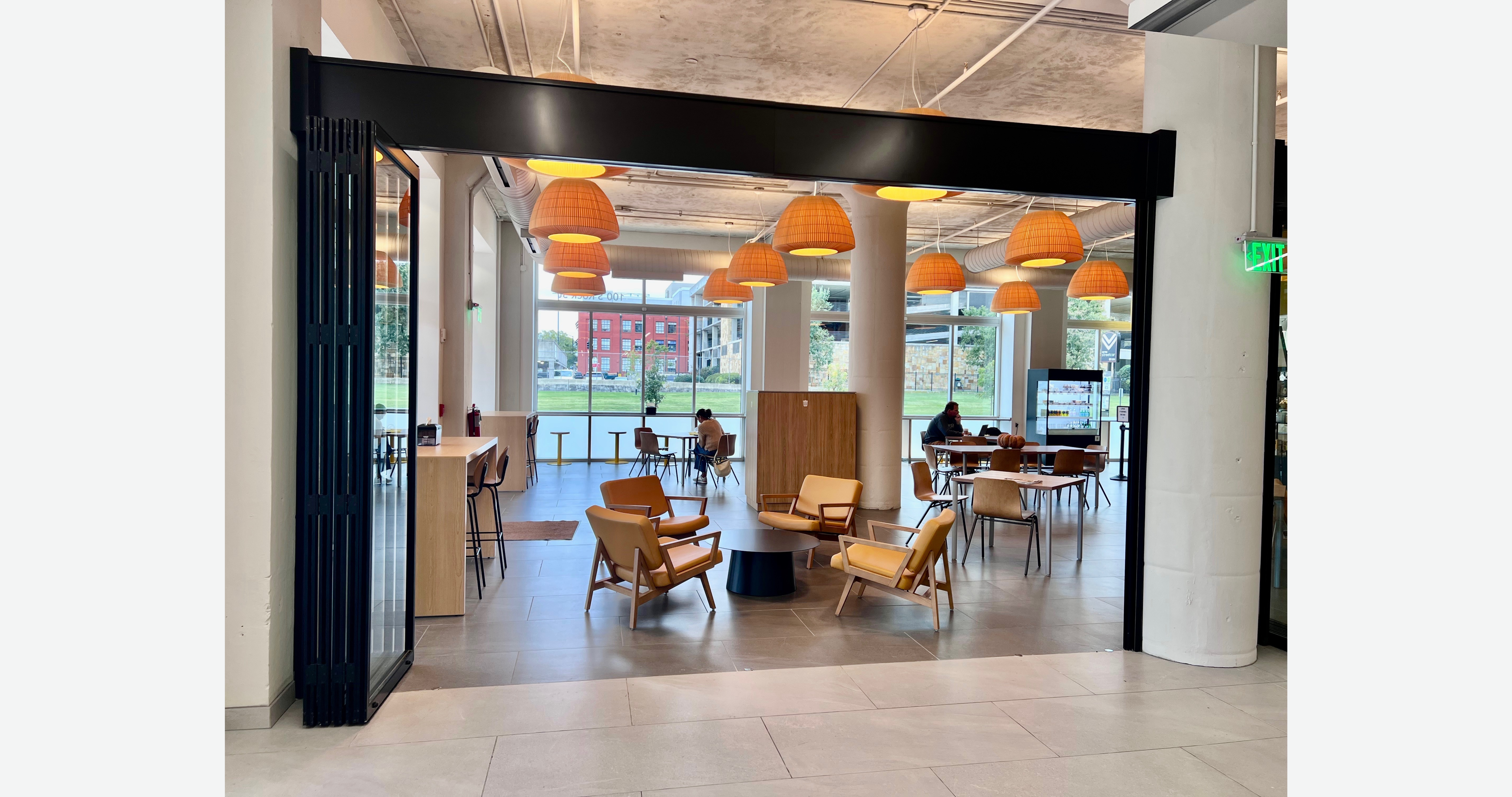 PK30 supplied 48.2 linear feet of folding glass wall systems and one swing door to seamlessly connect the Lobby and Café.