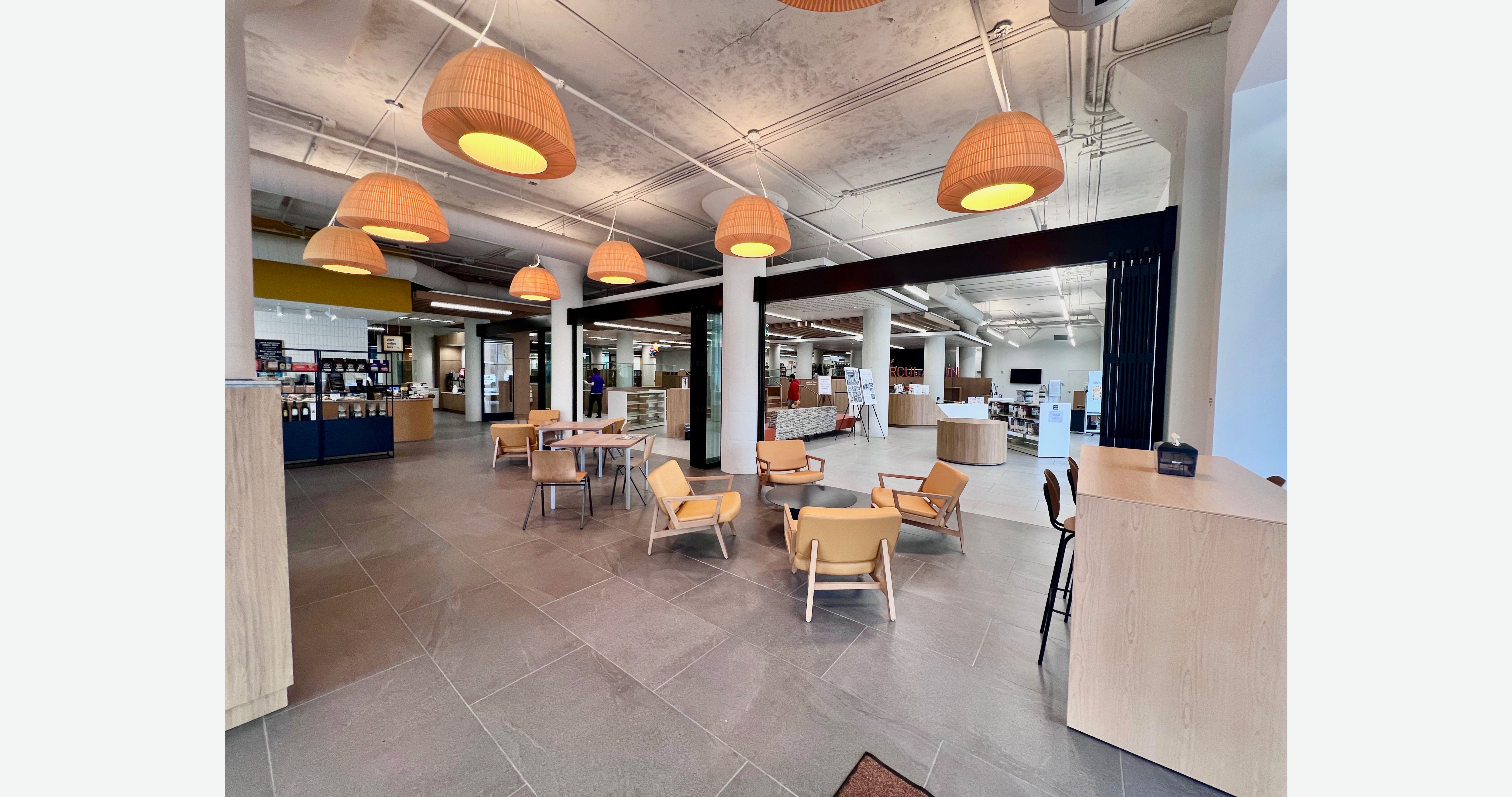 - Future-Ready Flexibility: compact folding panels allow the café to open entirely to the library when needed