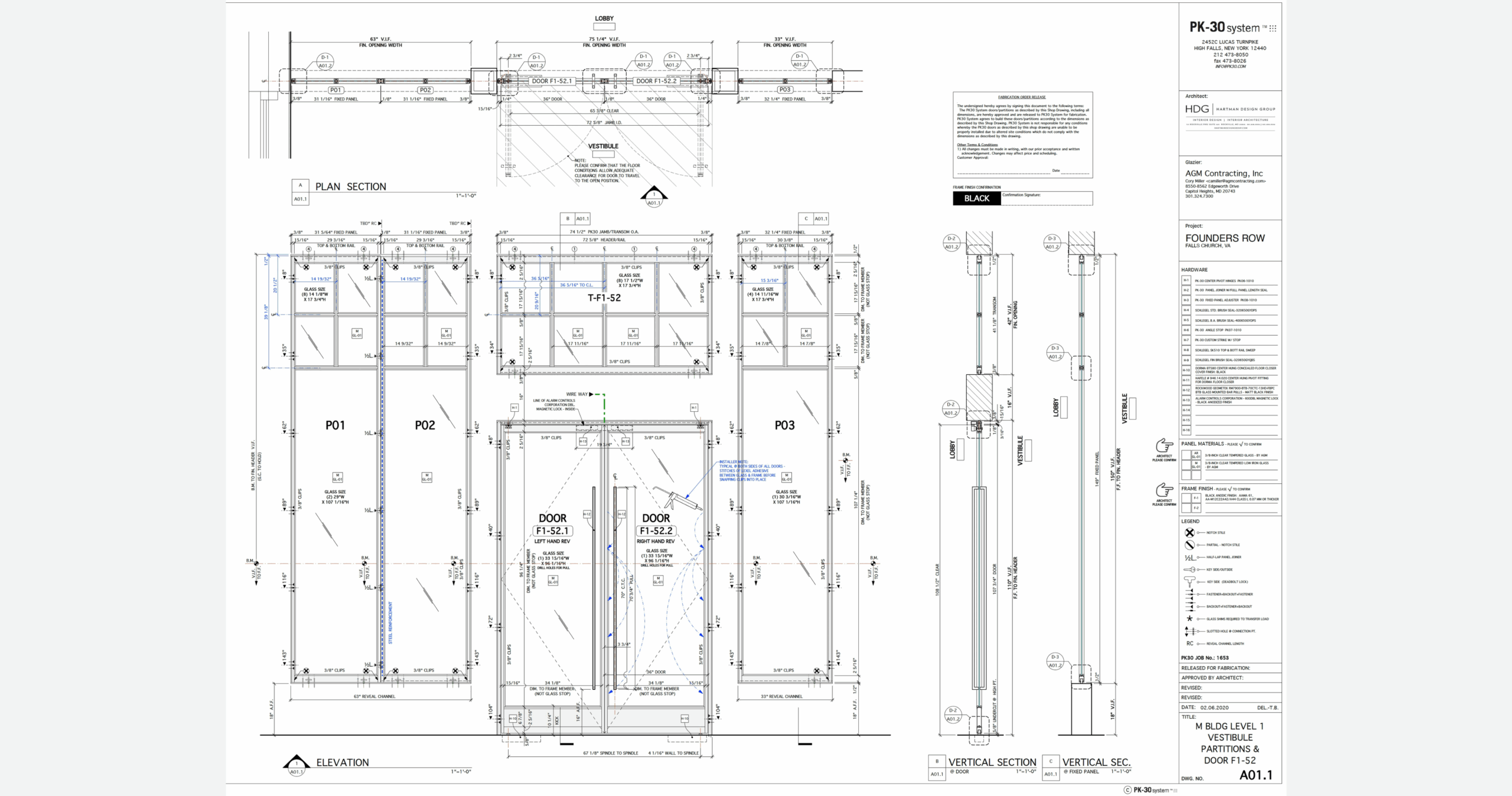 The success of Founders Row underscores the value of The PK-30 Experience—our ability to collaborate closely with design teams, engineer custom solutions, and deliver systems that integrate seamlessly into architectural intent. PK-30’s commitment to precision, quality, and reliability not only met but exceeded expectations. At Founders Row, our partitions were more than functional elements—they became an integral part of the design story, supporting the creation of a dynamic, enduring, and beautiful community hub.