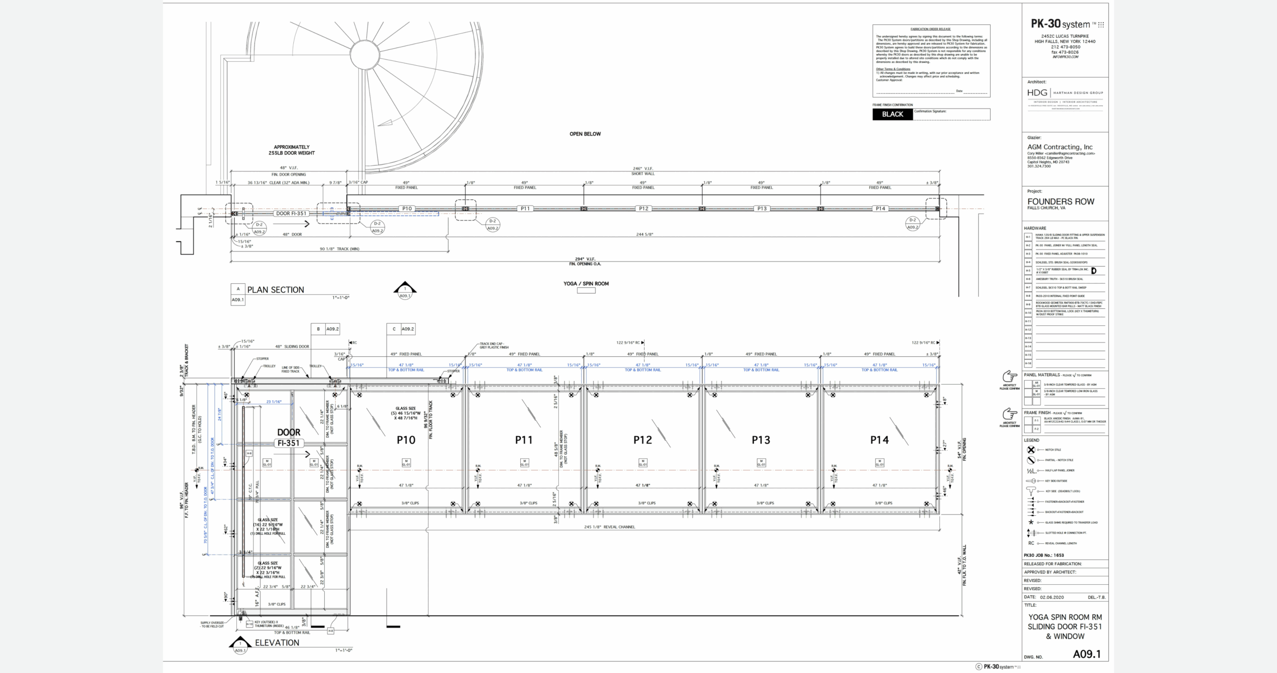 Total: 109 linear feet (16) • Fixed Panels (5) • Swing Doors (14) • Sliding Doors