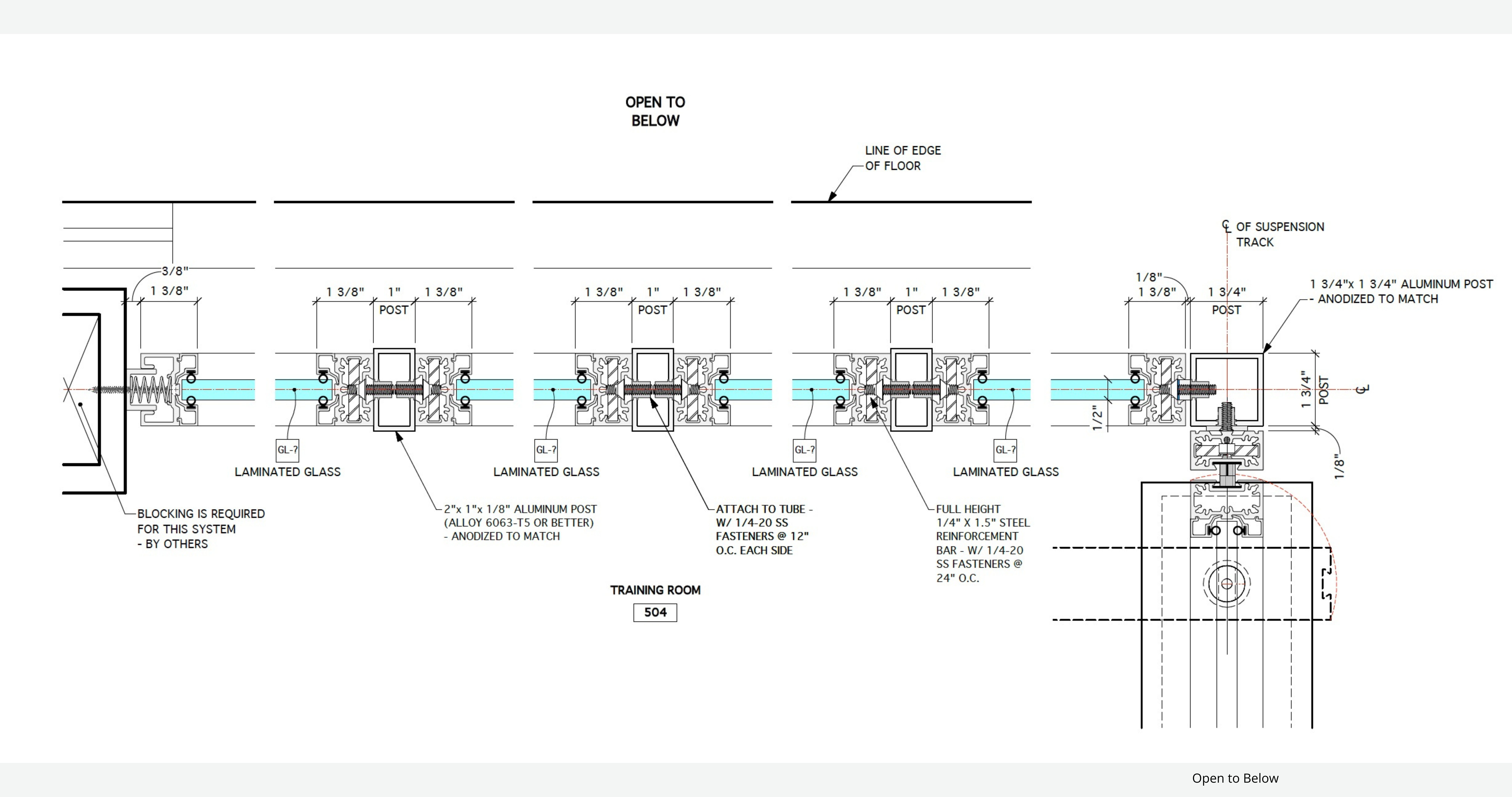 One section of the installation bordered an open-to-below space. Standard clip engagement was not sufficient for this condition. PK-30 engineered a custom reinforcement solution including mechanical reinforcement through glazing beads, a fully secured snap-in system, reinforced vertical members with double-thickness posts, and anchorage into structural blocking. If impact occurred, the glazing system would not disengage. PK-30 provided stamped engineering calculations for this wall—demonstrating engineering accountability, not just fabrication capability.