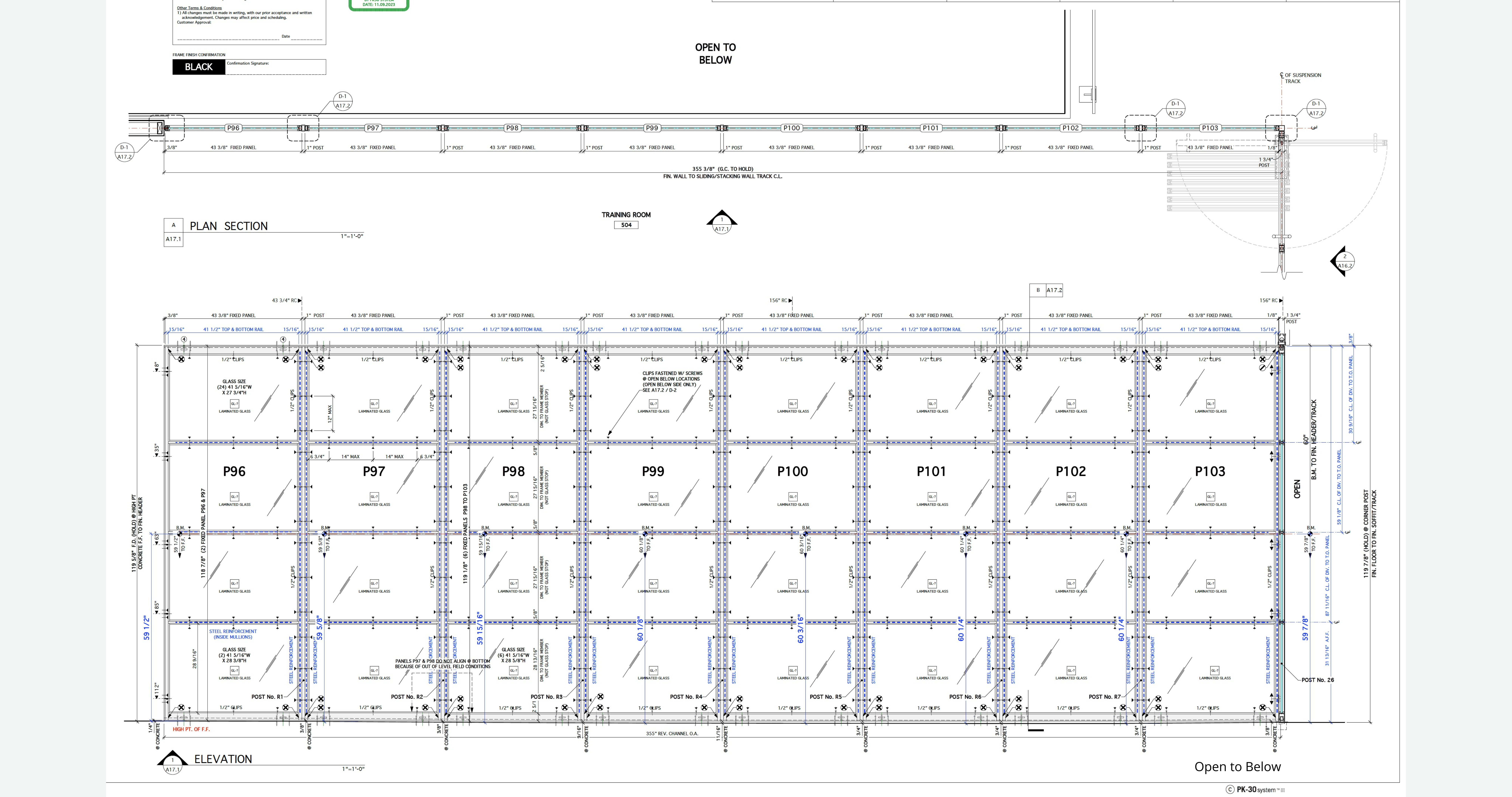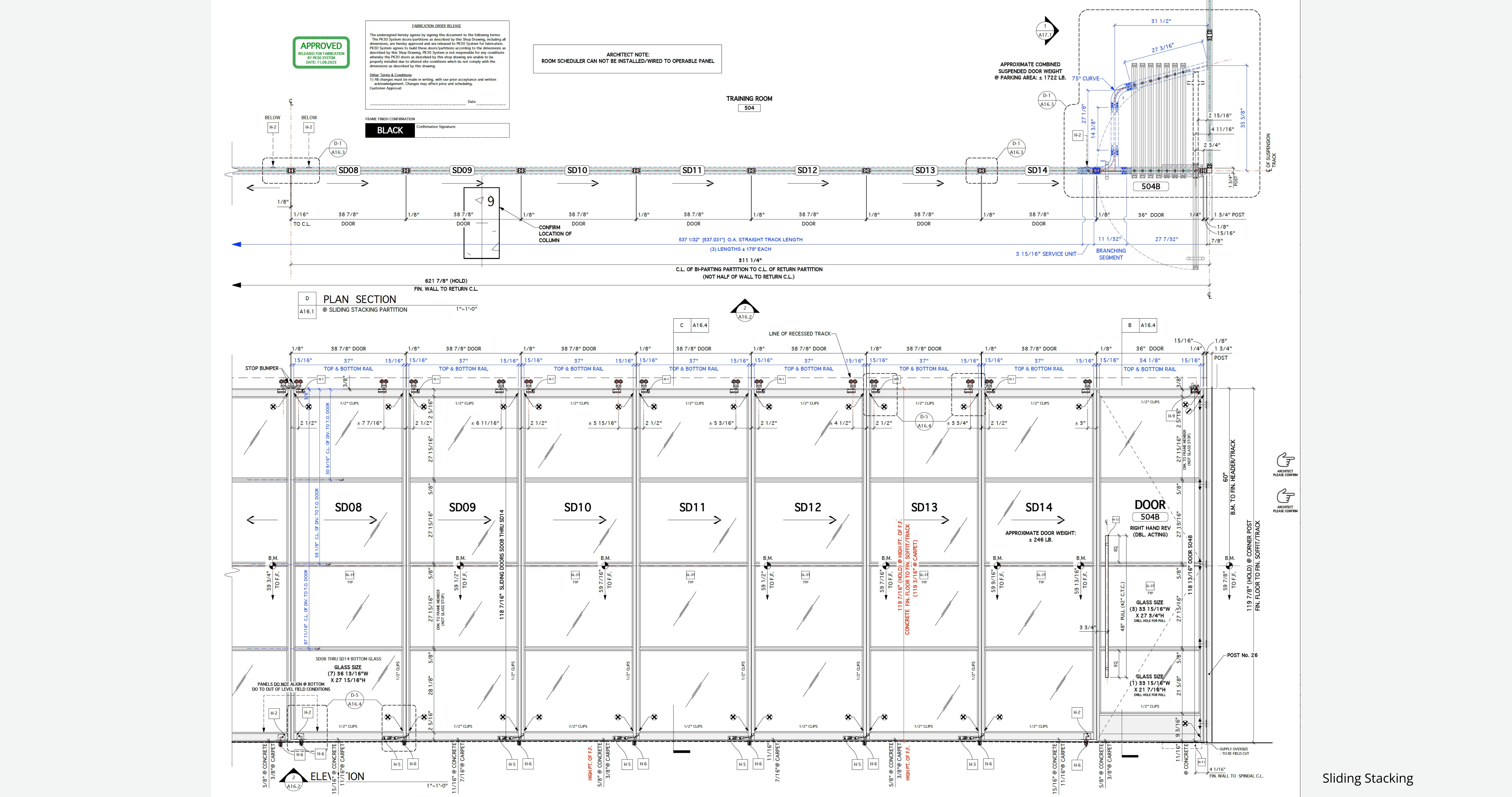 426 Linear Feet total: 14 Operable Panels (sliding/stacking) • 26 Swing Doors • 98 Fixed Panels (including the double-height Club Lounge wall) • 4 PK-30 Door Jambs for Wood Doors
