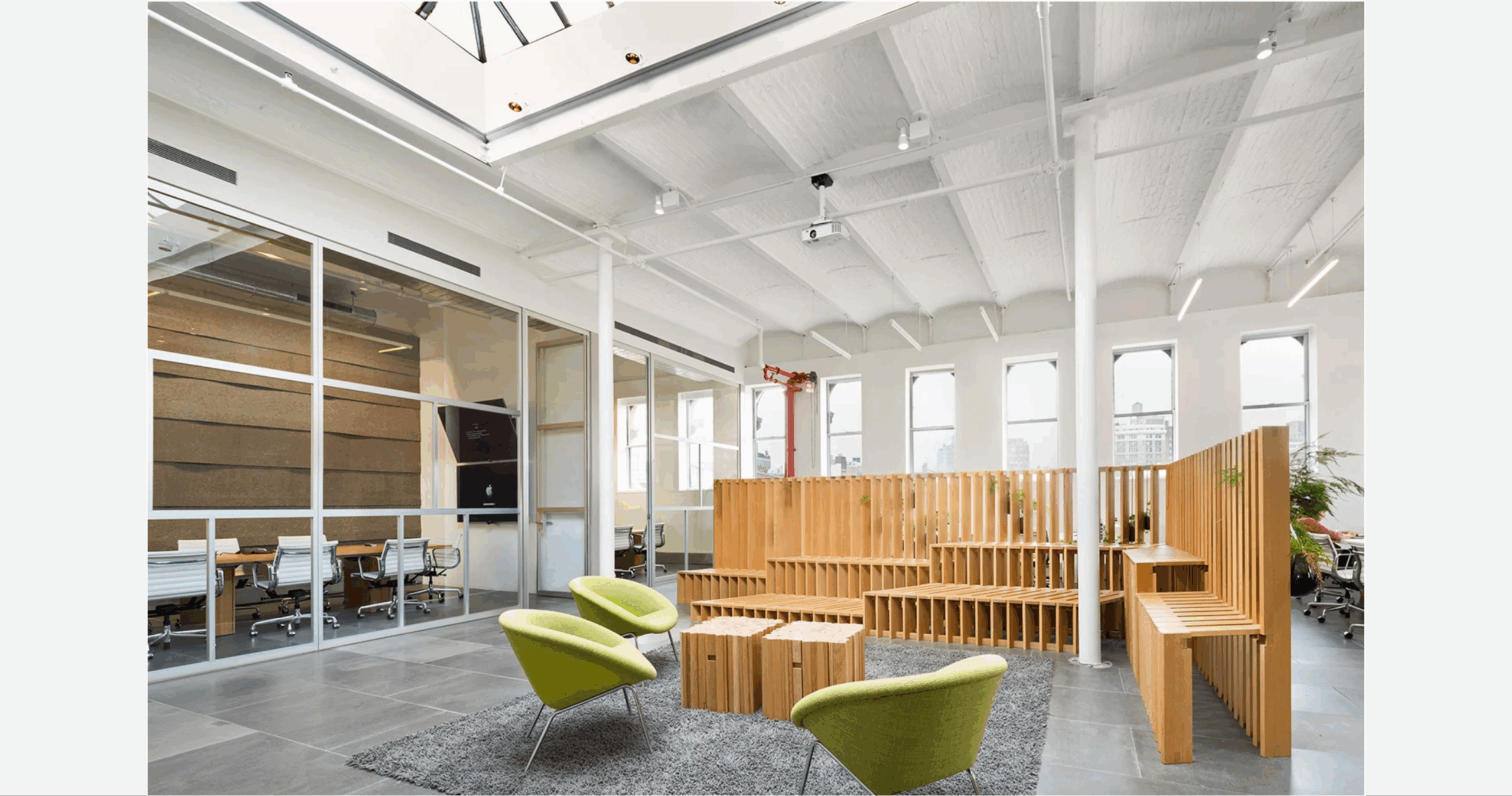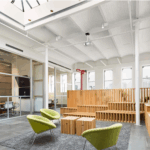 Spark Capital, a Boston-based venture capital firm known for early investments in companies such as Twitter, Wayfair, Slack, and Warby Parker, expanded its New York office to create a dynamic, collaborative workspace for its Boston, San Francisco, and New York teams. Located in a SoHo loft building, the office was designed to foster fluid movement, open collaboration, and visual transparency, with spaces that accommodate both formal presentations and informal brainstorming sessions. Inspired by the graphic patterns of traditional Japanese rock gardens, the design integrates concentric “ripple” motifs that symbolize balance, creativity, and the firm’s impact across its portfolio.