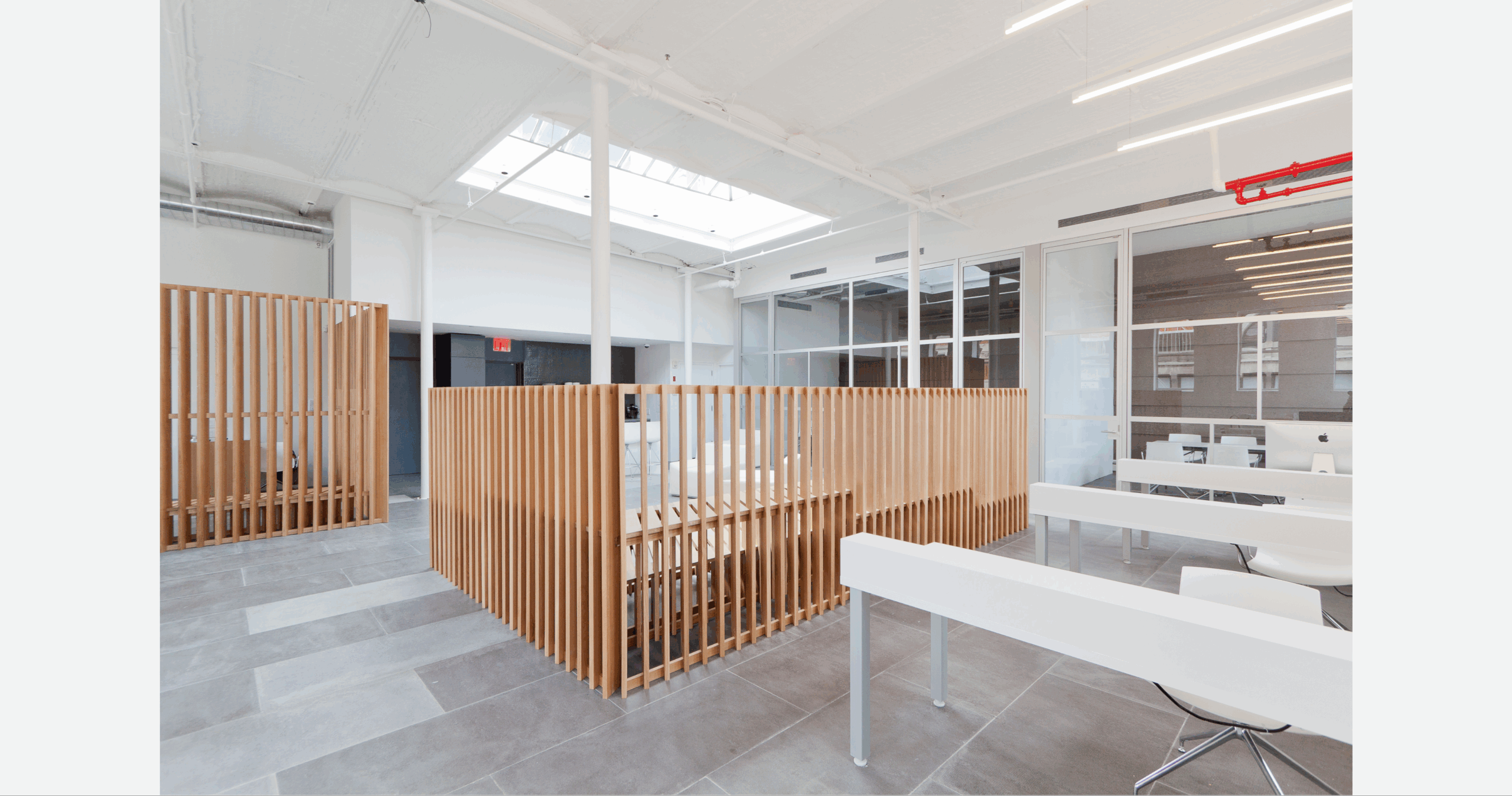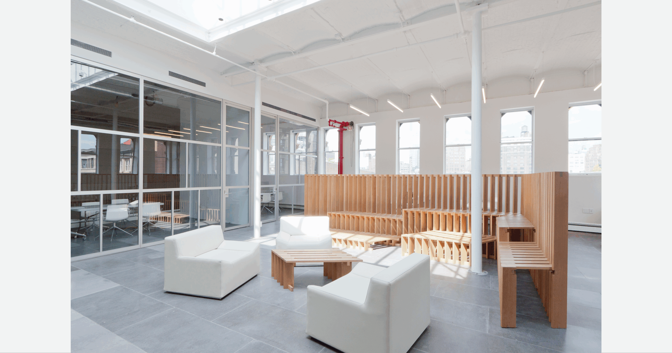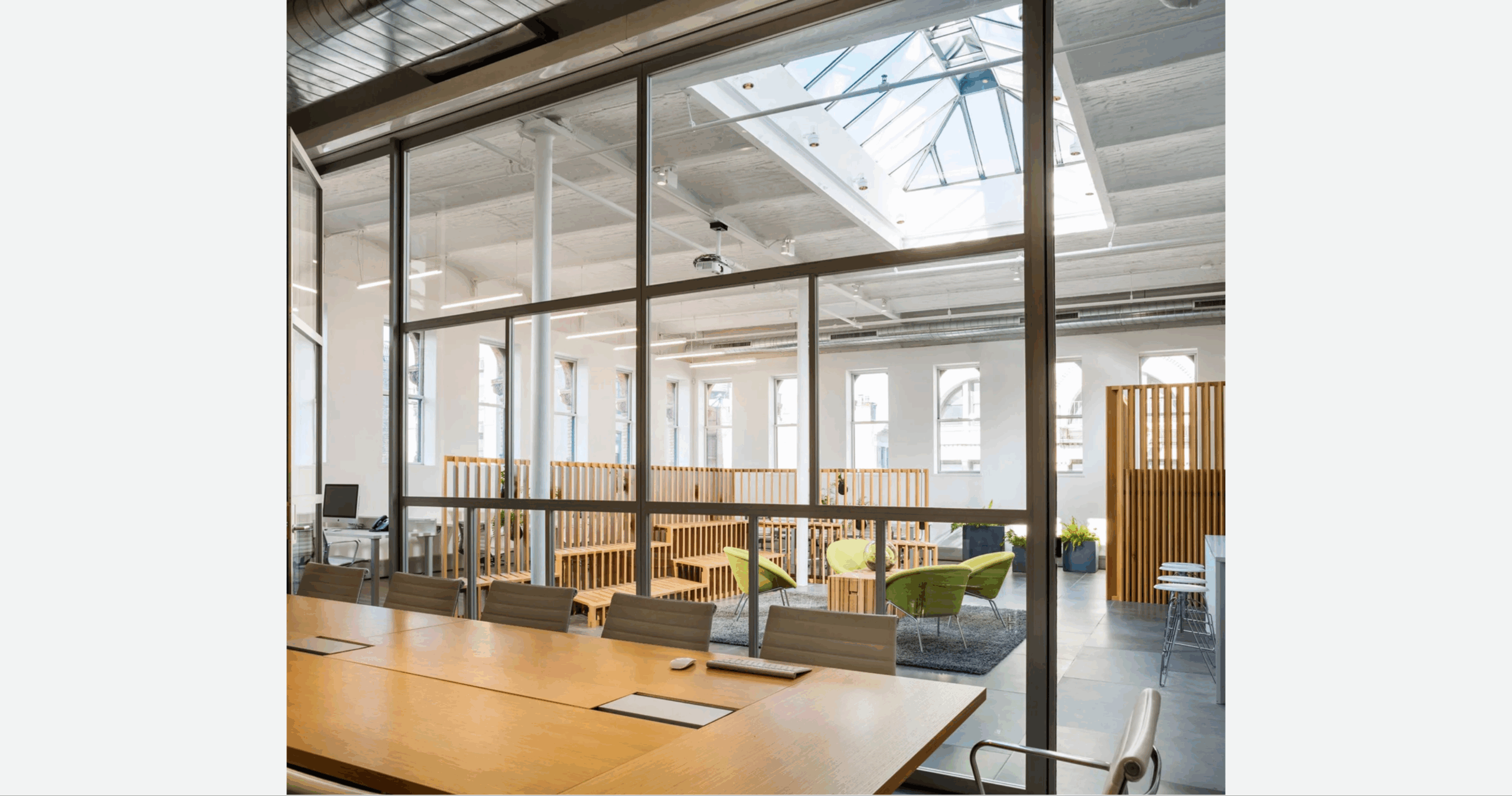 The PK-30 system enabled visual transparency, spatial fluidity, and a sense of openness, supporting the collaborative nature of Spark Capital’s office. Our custom solution ensured that highly detailed mullions and oversized panels were flawlessly installed and perfectly aligned with the design intent. PK-30’s walls integrated seamlessly with the surrounding wood, glass, and CNC-milled architectural elements, reinforcing the ripple-inspired design motif.