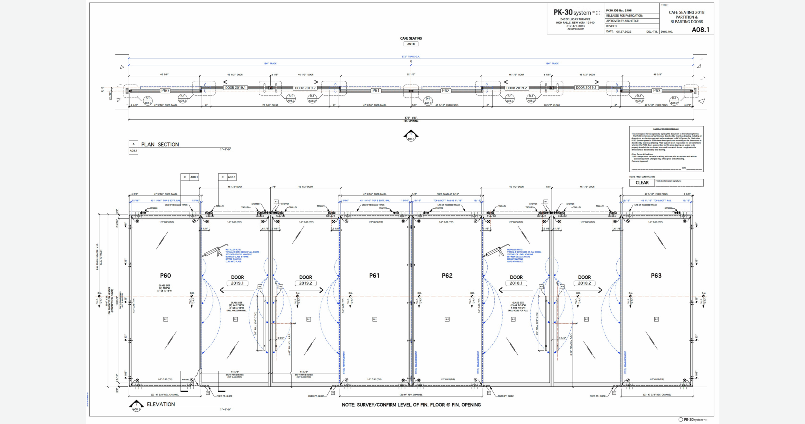 PK30 engineered and delivered a customized system of swing, sliding, operable, and fixed glass wall solutions totaling 464.1 linear feet.