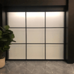 2. A system capable of integrating specialty Bendheim glass, maintaining both structural integrity and the subtle interplay between transparency and privacy central to the design intent.